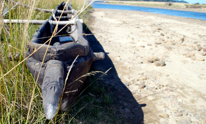 The airline worked closely with the New Zealand Māori Arts and Crafts Institute to design the waka and its carvings. From there it was taken to the various filming locations and flown on wires to create real shadows and textures for post-production.
