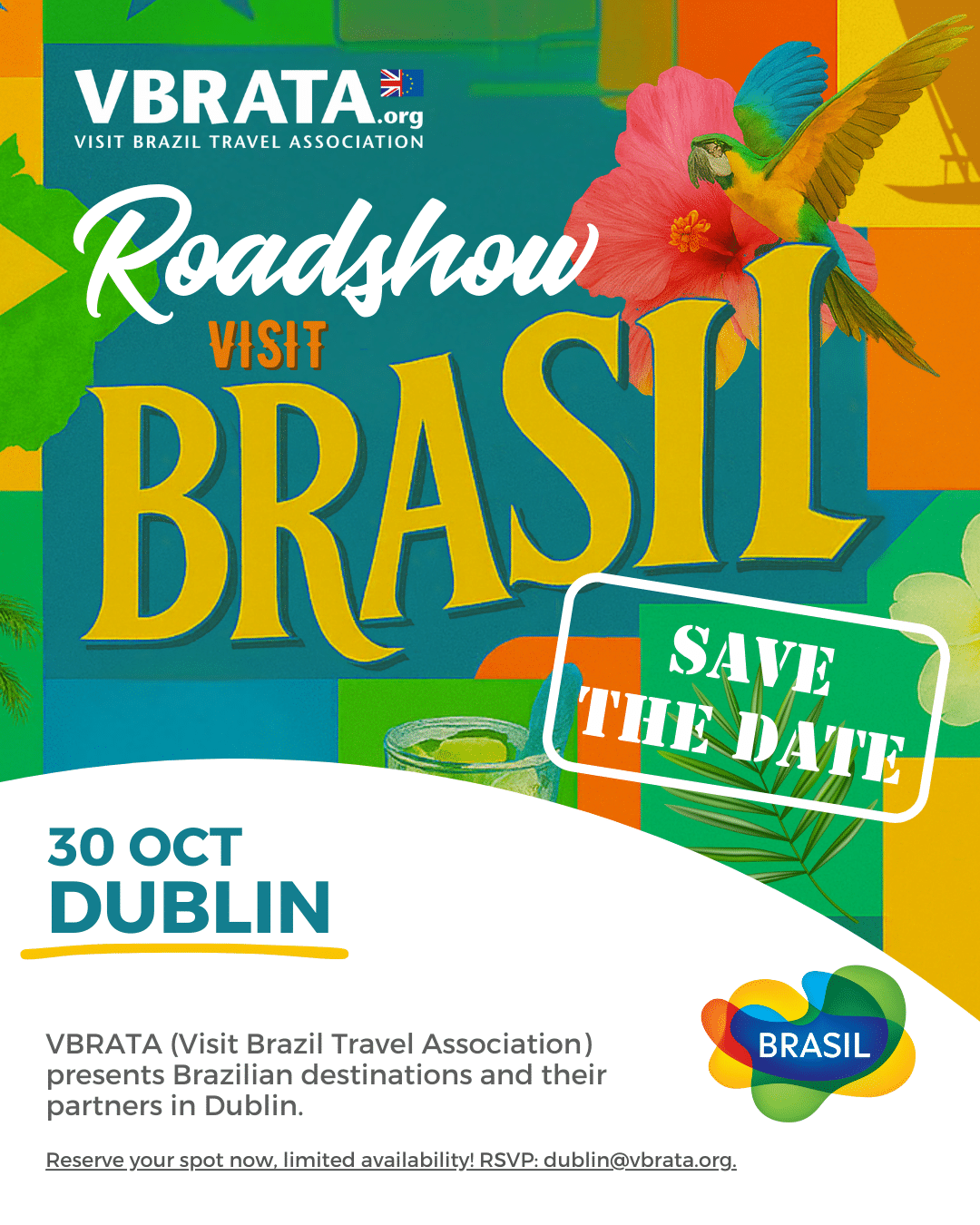 VBRATA (Visit Brazil Travel Association) and Embratur (the Brazilian Tourism Board) are bringing Brazilian destinations and partners to Dublin for the Roadshow Visit Brasil, offering insights into the country, its culture, and its fantastic destinations – always with joy and enthusiasm.