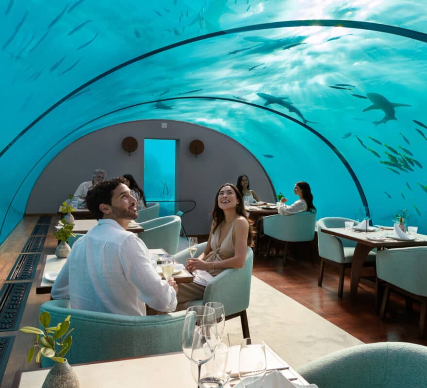 Five meters beneath the Indian Ocean, Ithaa dissolves the boundary between dining and dreaming. Schools of reef fish drift past curved acrylic walls as flavors unfold on your palate, each course a conversation between the kitchen’s artistry and the sea’s living theater. A meal not just eaten, but felt. A unique experience worth the air miles.
