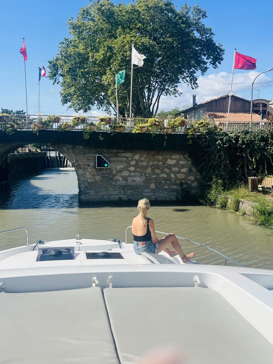 Our own journey began with a flight into Toulouse, followed by a train south to Béziers and a short taxi ride to Port Cassafières, where our floating home awaited: the Horizon 4, one of Le Boat’s luxury edition boats. We were six adults with zero boating experience, yet from the moment we stepped on board, it was clear that this wasn’t intimidating at all. The staff at Le Boat were wonderful: they gave us a safety briefing, a map of the area, and even a hands-on driving lesson. By the time we were left at the helm, what had seemed daunting felt surprisingly easy. We can honestly vouch for that, if we could do it, anyone can.