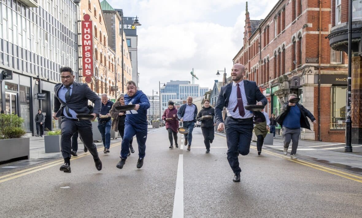 Businesses from the VQ area of Cork City raced along MacCurtain Street while flipping pancakes to claim the winning title.