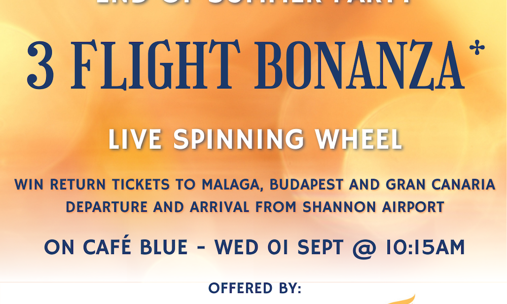 Café Blue has teamed up with Shannon Airport to host an ‘End of Summer’ party in Café Blue on Wednesday, 1 September at 10.15am.