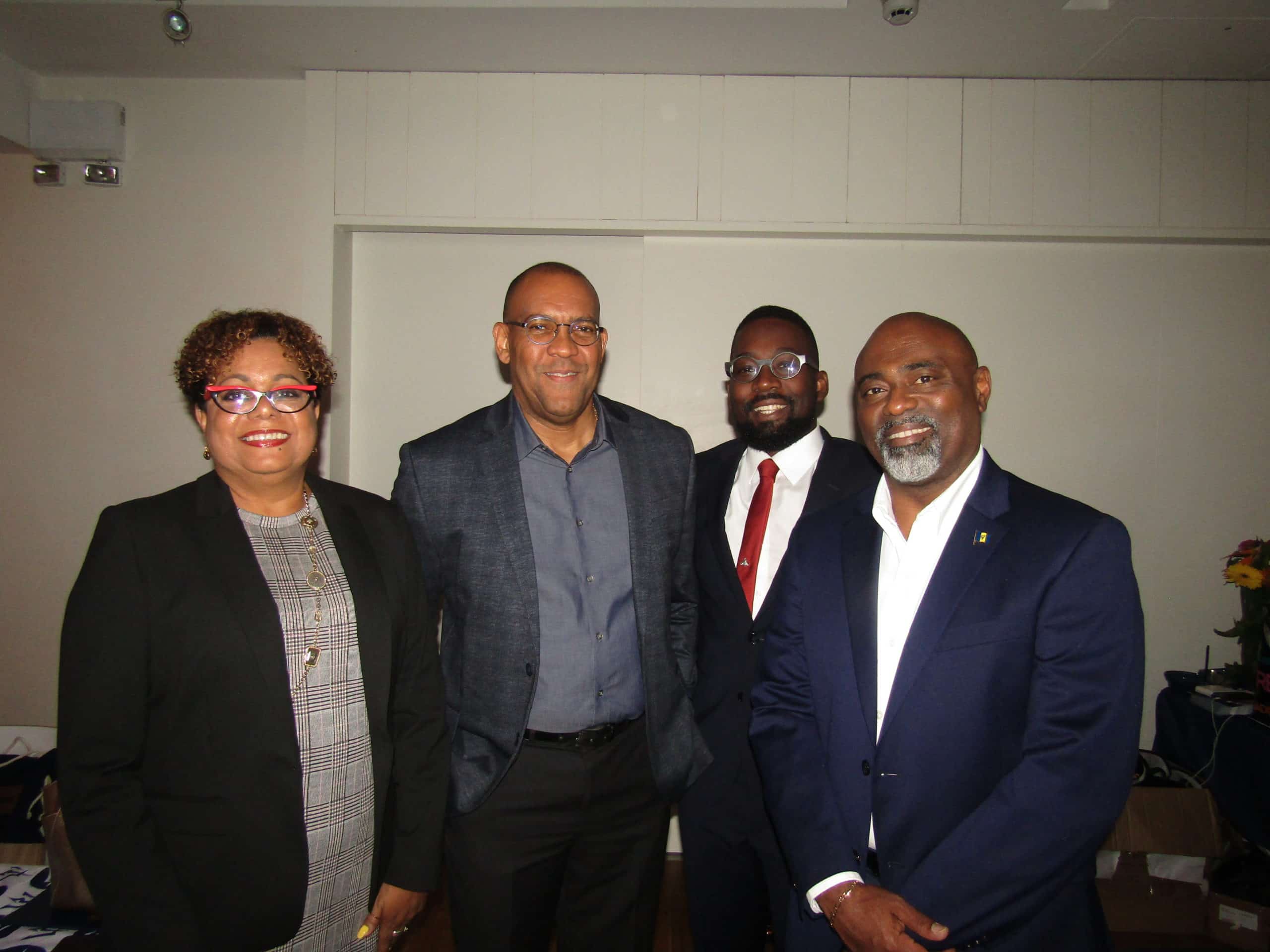 Above are Cheryl Carter, Barbados Tourism; Kerrie Symmonds, Barbados Minister for Tourism; Lennon Chandler, Barbados Tourism; and Rudy Grant, Barbados Hotel and Tourism Association.
