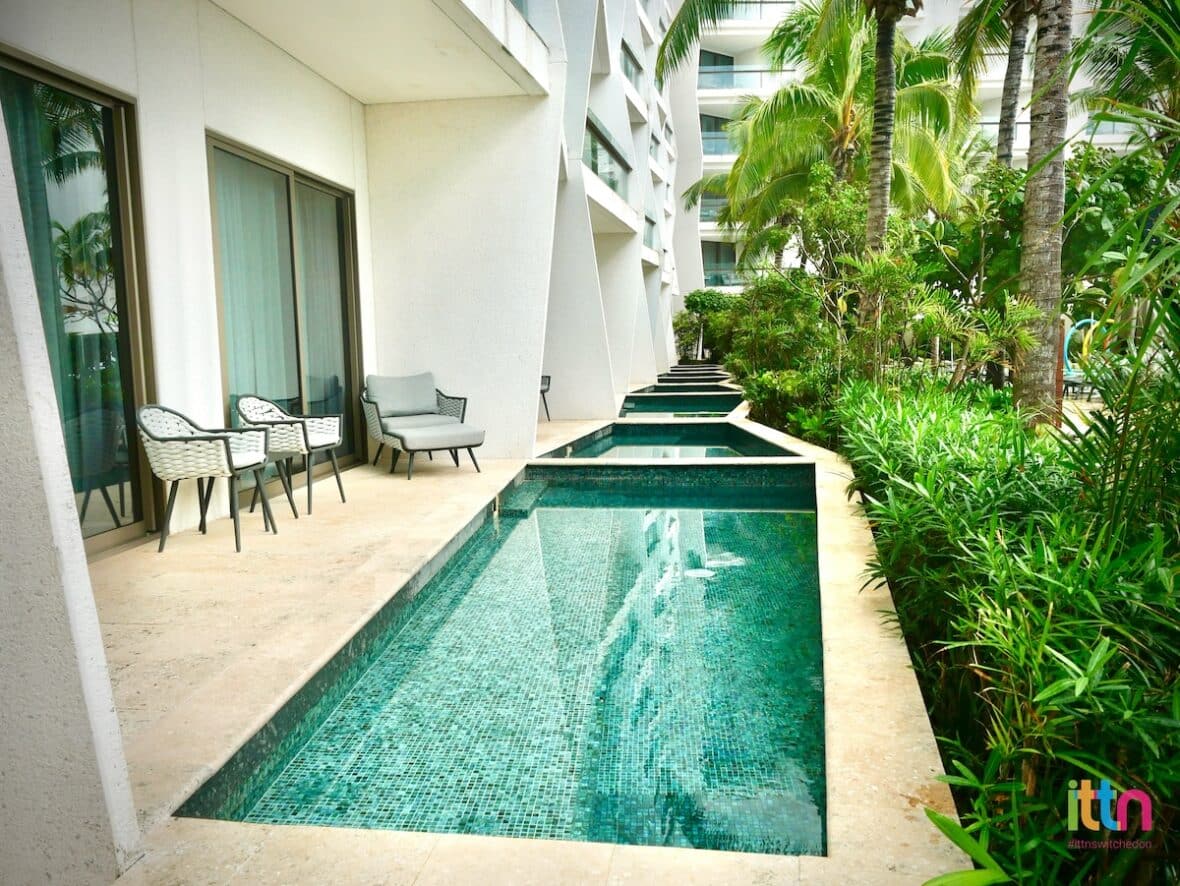 Nestled in a lush, Caribbean-inspired setting, the brand-new AMAI is their adults-only beach club offering a vibrant yet laid-back atmosphere, perfect for relaxing afternoons and magical evenings. It has its own kitchen, a DJ and bar, with swings. This costs US$40 per person per day and is open from 11 am to 6 pm. While it doesn’t have a pool, it is on the beach. After 6.30 pm, it is open to all guests.
