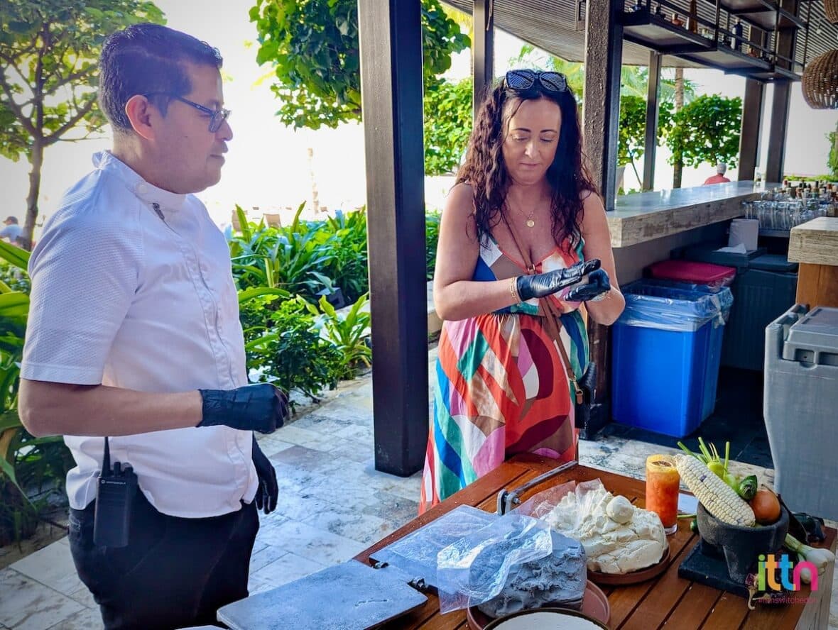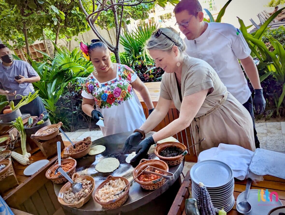 The group were greeted and treated to a taco-making class. Each of us pressed our own soft tortilla, fried them on a hot pan and filled each with a range of local flavours from shrimp, pork or chicken to salads and sauces.