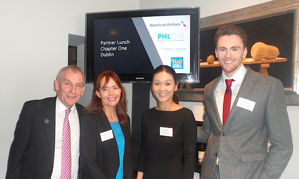 Hosting the lunch were (above) Greg Evans, Philadelphia CVB; Caitriona Toner, American Airlines; Ann Tok, International Communications Manager, Philadelphia CVB; and Tom Henderson, Corporate Communications Executive, Europe & Asia, American Airlines.