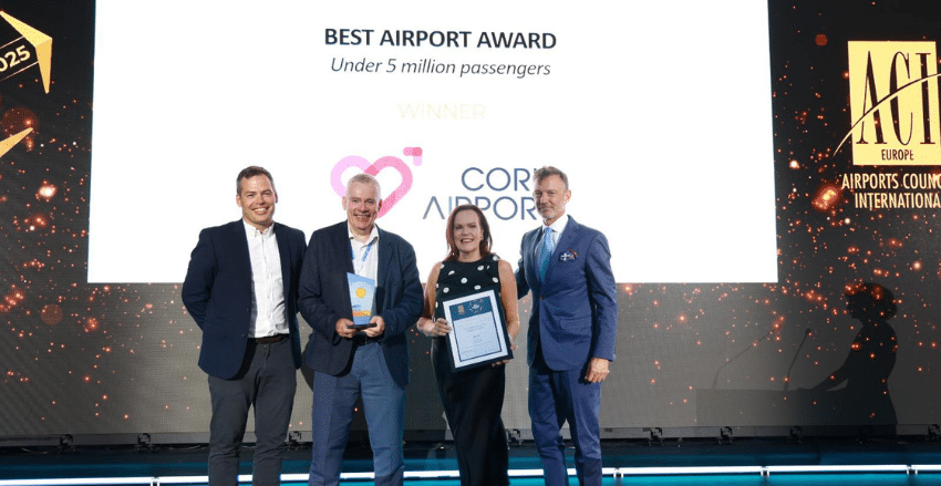 Cork Airport has been named Best Small Airport in Europe at the prestigious Airport Council International (ACI) EUROPE Best Airport Awards 2025, held during the aviation trade associations’ Annual Congress & General Assembly in Athens last night.