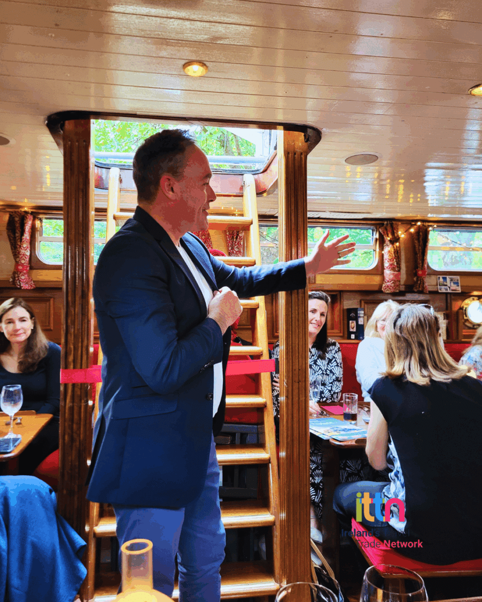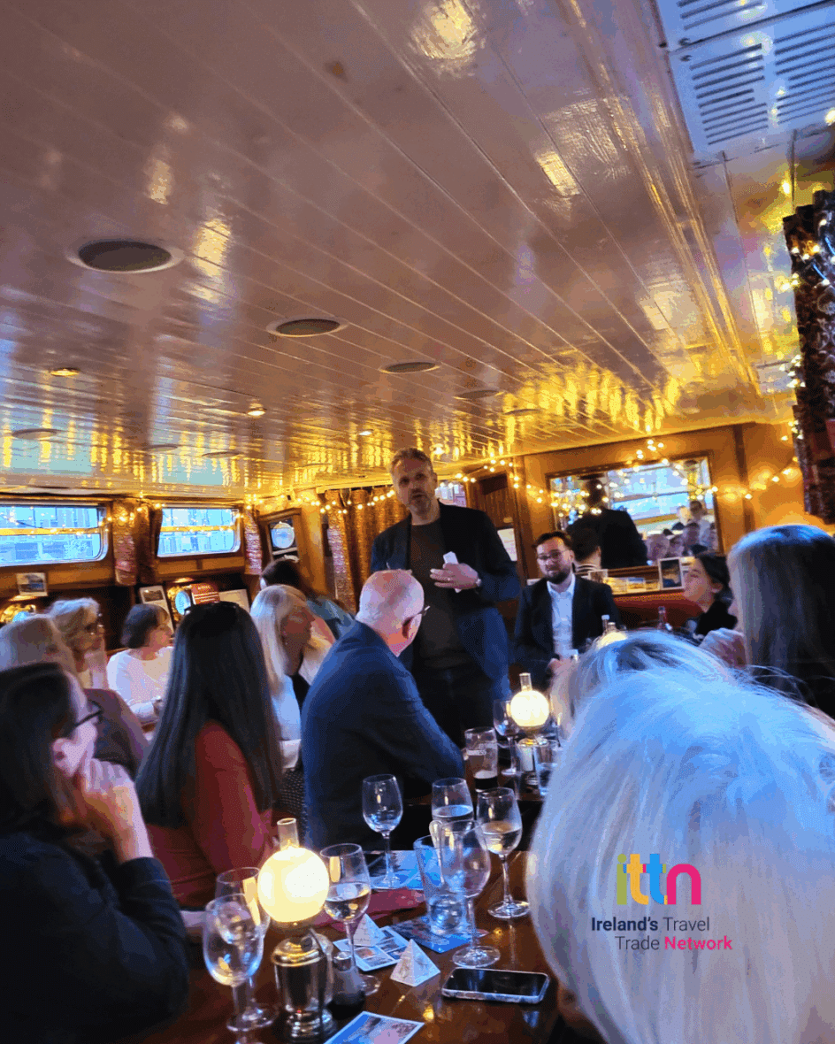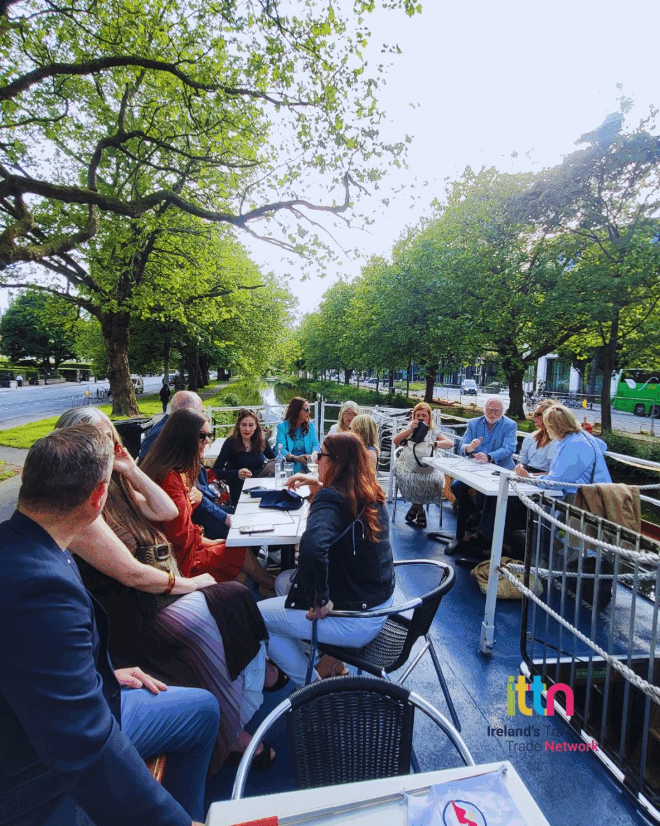 An exciting moment on the canal boat saw guests return back upstairs to watch as we passed through a barge on the Grand Canal by Leeson Street where we also heard from Claire Doherty, Product and Operations Director for Travel Department who explained the magic of their escorted tours, and the upcoming opportunities for all travellers around the world. She also told us more about the With growing interest in solo-friendly travel and their expanding river cruise programme across Europe – including the Danube, Douro, Rhine, Seine, and more – with 5-to-7-night stress-free itineraries available.