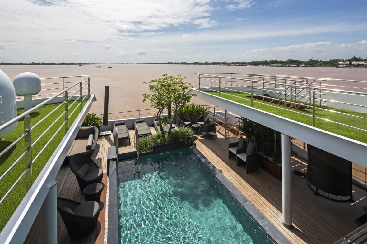 cultural immersion. The ship seamlessly blends Southeast Asian traditions with modern innovation, featuring the largest lead-in suites on the Mekong and a near 1:1 staff-to-guest ratio. All crew are employed directly by Scenic, ensuring attentive, personalised service that elevates the onboard experience.