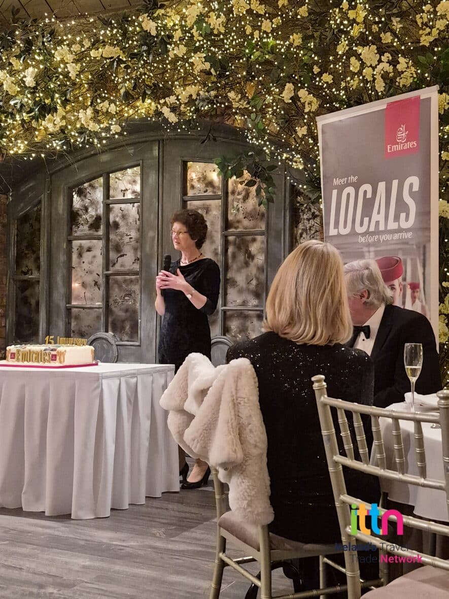 On Friday night, Anita Thomas highlighted Emirates’ dedication in supporting local, as the airline brings “the best of Ireland with our onboard products, every time they fly. From Keogh’s Crisps and Killowen Yogurt to Baileys Original Irish Cream Liqueur and VOYA, Irish products feature prominently across our global onboard offering.”  Thomas went on to thank her incredible commercial team on the ground in Dublin; citing the 60 million investment into Dublin operations and raised a glass to the hard work that cargo teams and Irish travel agents have made in seeing the airline’s success in the market.
