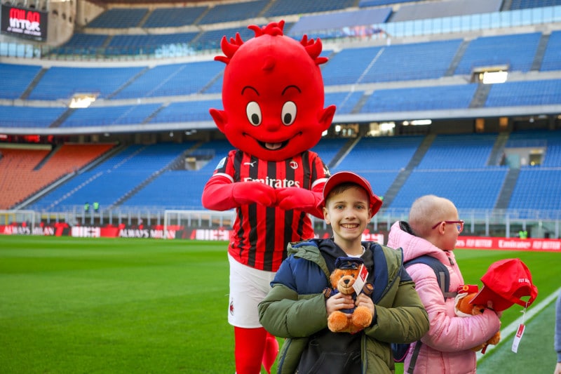 The guests had the chance to visit some of the most exclusive areas of the historic San Siro stadium, (which is shared by both of Milan’s football giants), welcome the First Team players upon their arrival, and enjoy a special surprise from legendary ex-player (of both clubs) Zlatan Ibrahimović, who greeted them personally and shared a few words of inspiration. During the team’s warm-up, the group took a lap around the pitch and met Milanello, the Club mascot, as well as Rossoneri speaker Gegio.