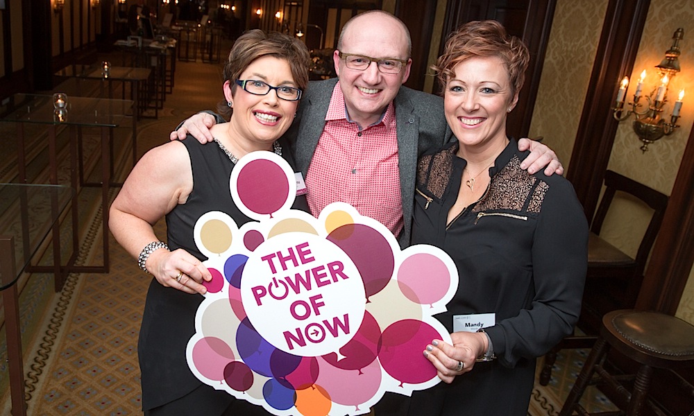 Above, Fidelma highlights ‘The Power of Now’ with Mike Graham, Head of Sales Promotions, and Travel Counsellor Mandy Walsh.