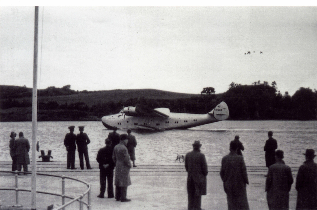 Foynes was the first European airport to which Pan Am began operating commercial transatlantic services on 9th July 1939 under the command of Captain Harold Gray. The ‘Yankee Clipper’ was the airline’s first Boeing B314 NC18603 allocated to the Atlantic division. A replica of the aircraft is on display at Foynes Flying Boat & Maritime Museum. Captain Charlie Blair, husband of the late Maureen O’Hara, was a frequent visitor and flew the last scheduled passenger flight from Foynes to New York in October 1945.
