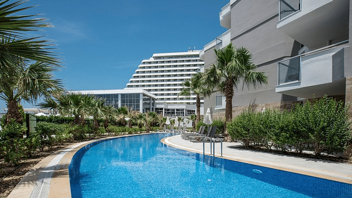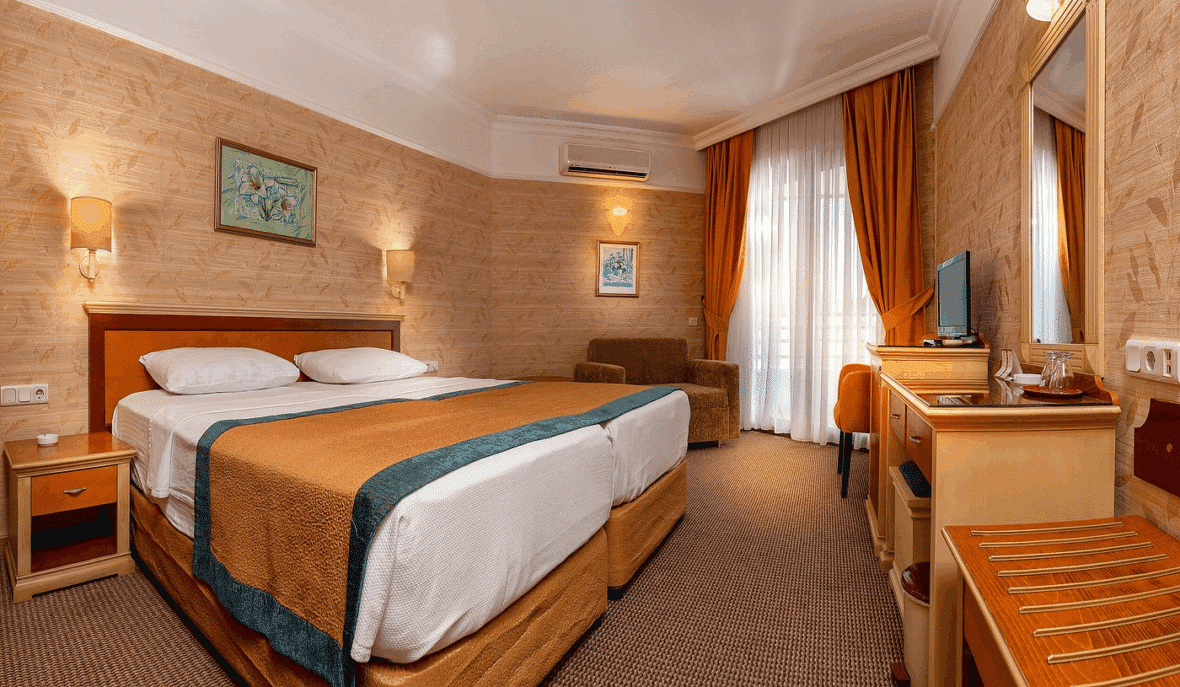 Second was The Palm Hotel – this hotel is a well-located four-star property in the heart of Kusadasi, just a short walk from the town’s marina and waterfront promenade. The hotel offers 70 spacious and well-maintained guest rooms, many of which feature sea views or balconies. Rooms are equipped with modern amenities including air conditioning, complimentary Wi-Fi, flat-screen TVs, minibars, and en-suite bathrooms.