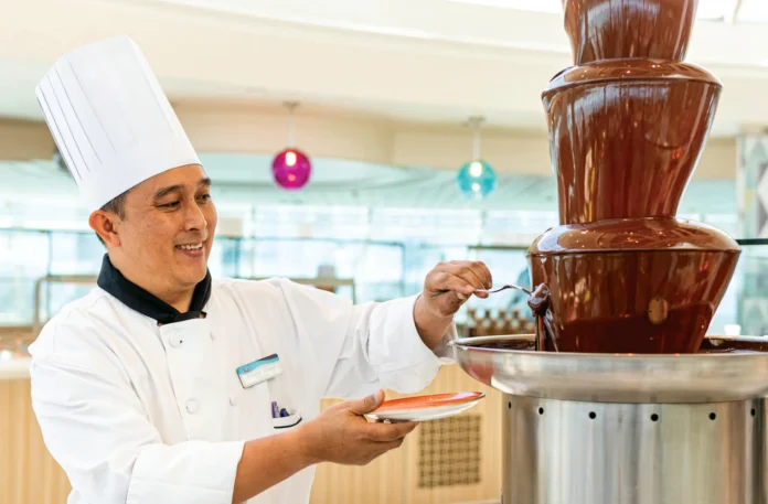 Guests can also get creative at the Build Your Own Chocolate Trifle station, layering rich brownie and velvety chocolate mousse. The onboard crew will guide guests in customising their toppings, with options including whipped cream, shaved chocolate, salted caramel, cherry or orange compotes, crushed waffles, and chocolate sauce to make their own marvellous creations.