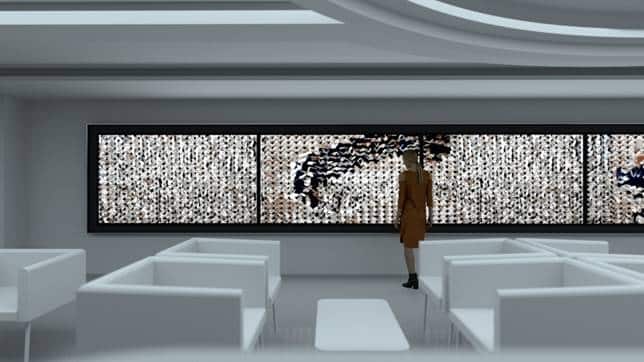 “Every Wing Has a Silver Lining” is Harris’ biggest ever piece in terms of physical size – spanning 52 feet in length – making it one of the largest real-time digital interactive artworks to exist in terms of raw processing power that is fully interactive to the movement and the touch of the viewers and passers-by.