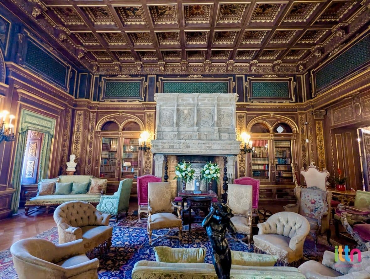It was built by Cornelius Vanderbilt II, one of the richest men in America in his time. The Breakers served as his summer getaway, and it reflects a classic Italian palazzo design, overlooking the sea. It was built in the early 1890s with a breathtaking central Great Hall rising 50 feet to the ceiling. The beautiful grounds cover an impressive 13-acres.