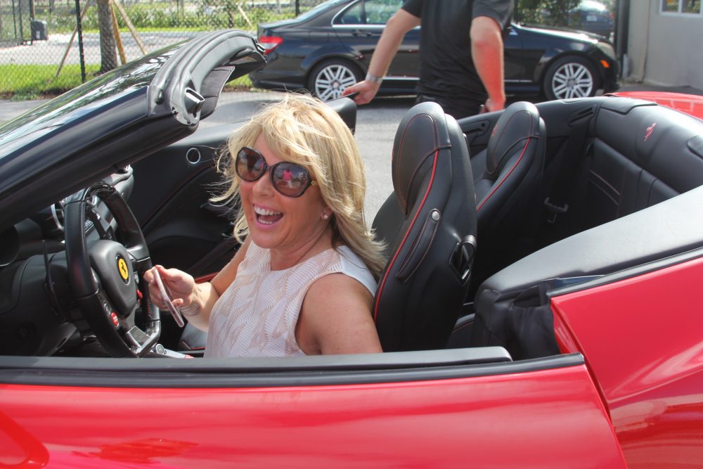 (Pictured, Sandra Corkin of Oasis Travel in pre-Covid times, road testing a Ferrari!)