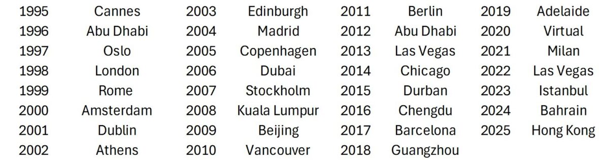 “I am proud to have represented Shannon Airport at all 30 World Routes events since Cannes in 1995, plus of course the Virtual Event in 2020, making it actually 31. More importantly, I am personally delighted to be the only delegate in the aviation industry to have consecutively attended all 30 events. This is a unique achievement and one that will never be repeated. I recall the price of a bottle of Heineken in Cannes in 1995 was a whopping £10 but the first event is always the best. I’m older Budweiser now”