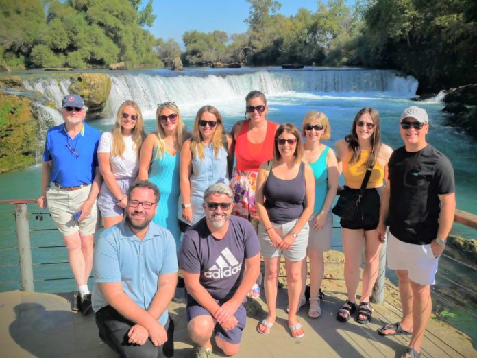 While in Manavgat, the group boarded a tall ship to tour. It departs from the very special Side, a bustling seaside city steeped in ancient architecture. There are refreshments on board and the sea breeze is idyllic in the sizzling September temperatures of 30+ degrees. Equally, a dip in the sea cooled off willing swimmers.