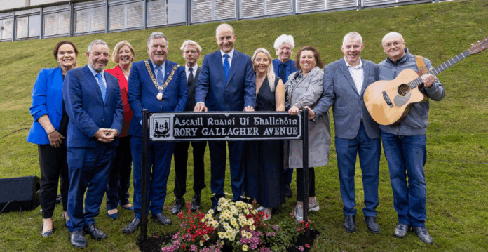 An Taoiseach Micheál Martin has officially unveiled Rory Gallagher Avenue – the new name for the main entrance road at Cork Airport.