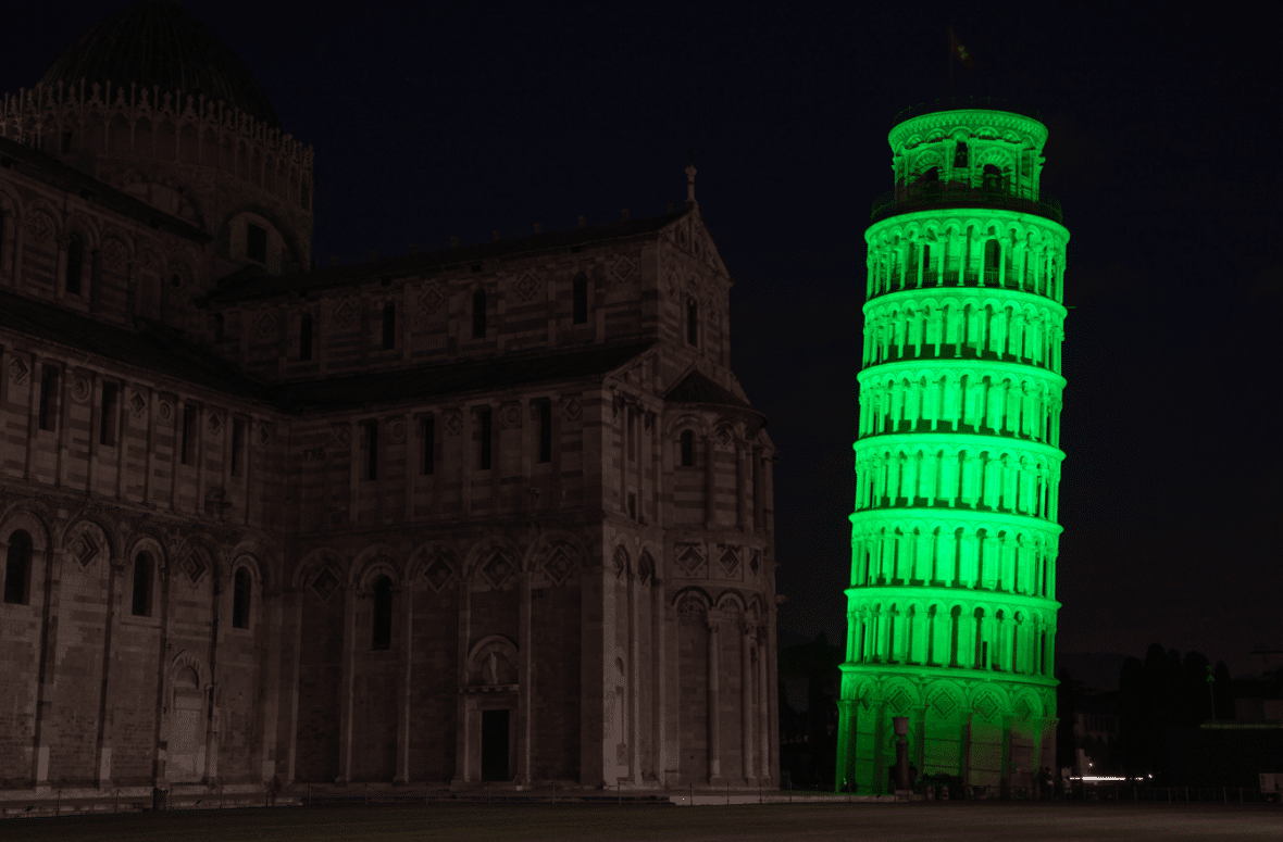 Sites lighting up in green for 2026 include the Leaning Tower of Pisa, the Empire State Building in New York, Niagara Falls, the CN Tower in Canada, The National Wallace Monument in Scotland, Heidecksburg Castle in Germany, the Cibeles Fountain in Madrid, La Croisette in Cannes, the Grand Place in Brussels and the Sky Tower in Auckland.