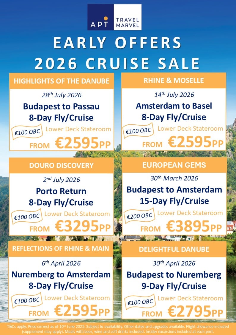 With demand for river cruising from the Irish market continuing to surge, Travelmarvel’s 2026 itineraries are already generating strong interest, especially with the introduction of two brand-new ships to their modern European fleet.