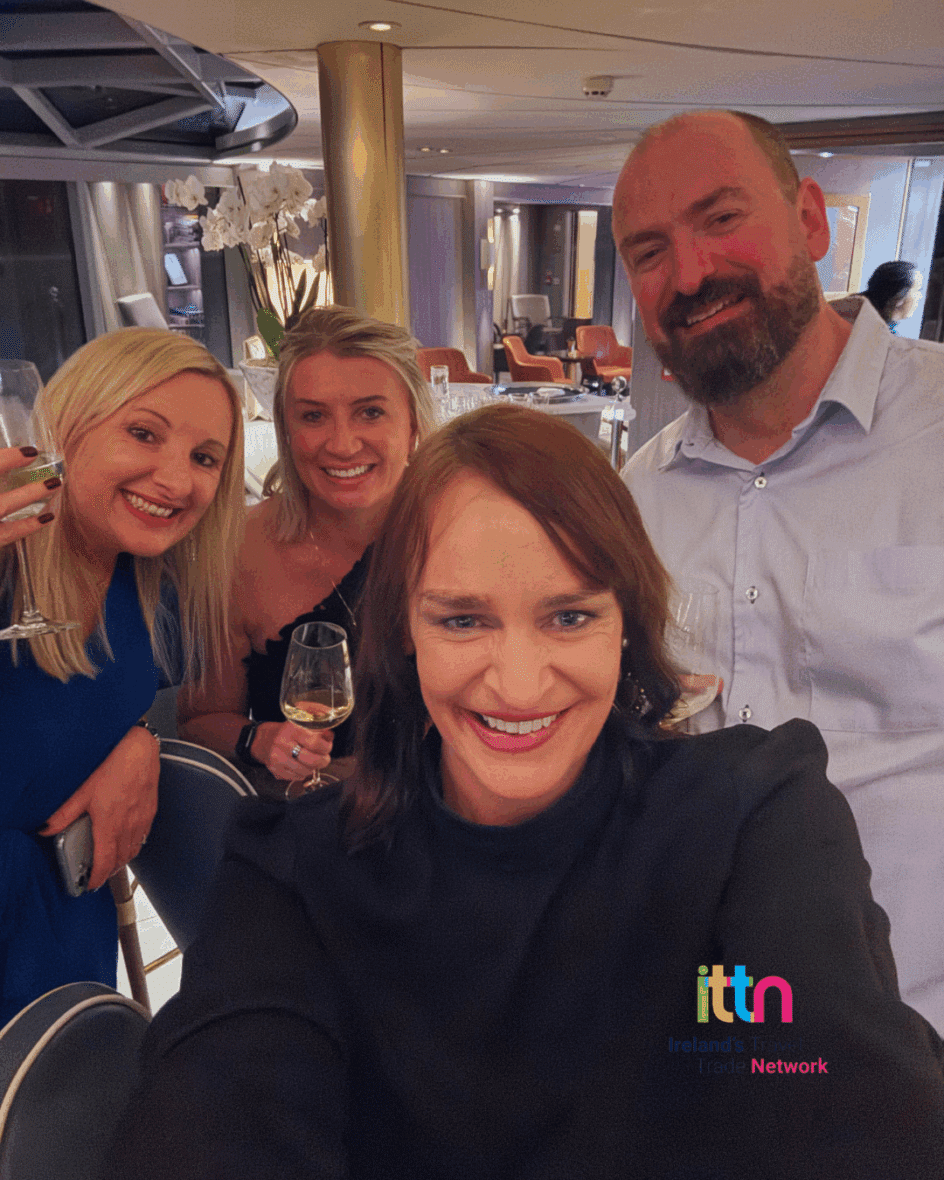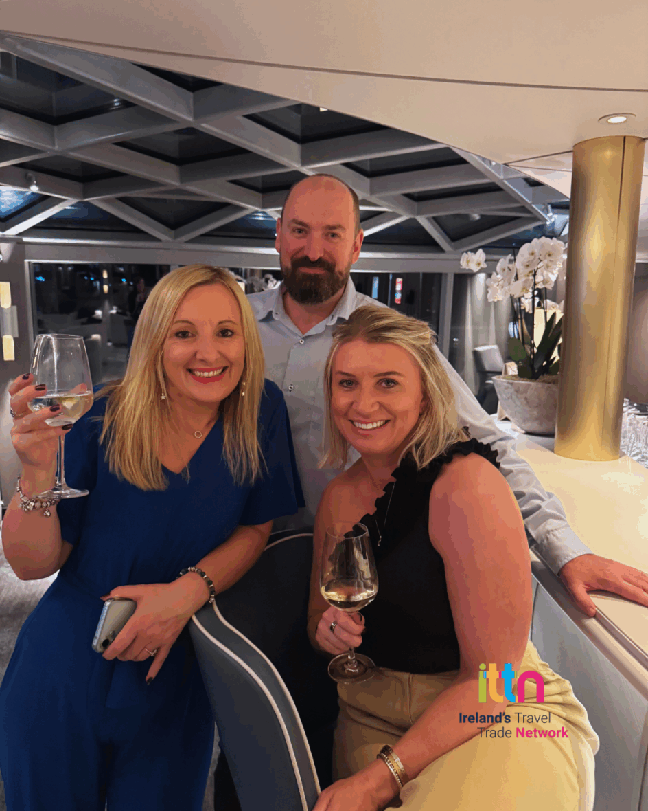 Kicking off in Butlers Coffee at Dublin Airport, the group of 20 travel professionals from Ireland — including Jean Cusack (Icon Travel), Mandy Walshe, Brian Bloomer, and Fidelma Brady (all Travel Counsellors), Shay Browne (Killiney Travel), Evelyn McClafferty and Donna Feeney (Atlantic Travel), Ciara Tuyet Sheerin, Amanda Anderson, and Tanya Leighie (Cassidy Travel), Annette Hynes and Ciara Keane (Fahy Travel), Ross Waters (Sunway), Edel Ward (Best4Travel), Elizabeth Leonard (J Barters), Cona Moore (Frosch), and Adrienne Crudden and Rosalind Bryant (Oasis Travel) – set off to board the S.S. Victoria for a quick 24-hour sailing from Brussels to Amsterdam.