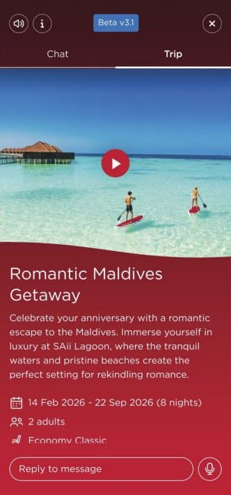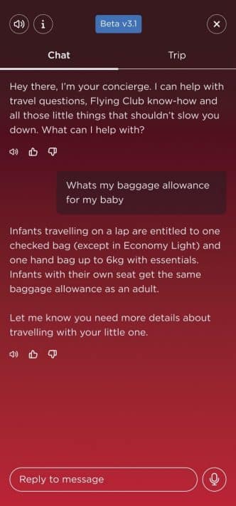 Beyond trip planning, the Concierge supports Flying Club queries and general customer assistance, creating a seamless, personalised digital experience.