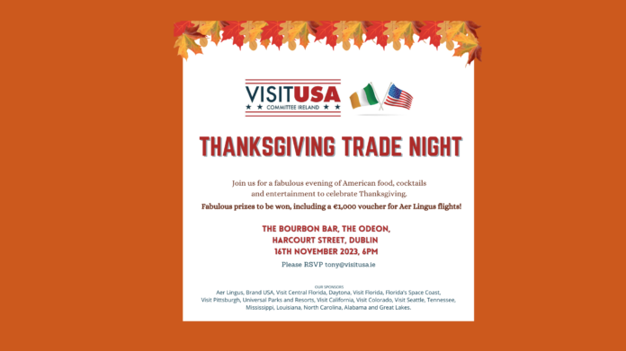 The Visit USA Thanksgiving Trade Night is back and will take place on the evening of the 16th November 2023 from 6 pm in the Bourbon Bar of the Odeon, Harcourt Street, Dublin.