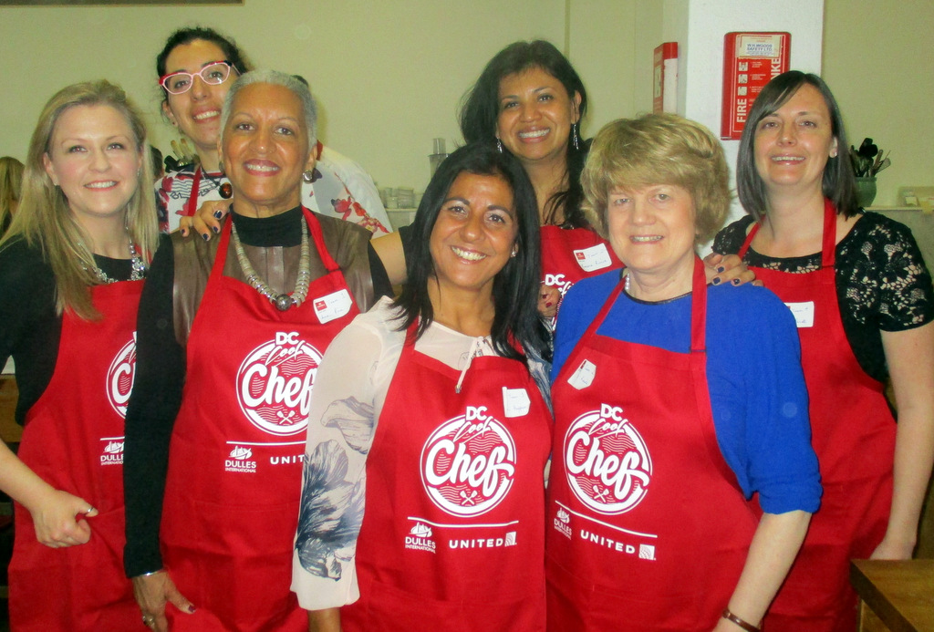 Letizia Sirtori and Sirin Huffam from Destination DC, Ann Pina from Metropolitan Washington Airports Authority, and Roxana Rivera from Newseum, along with Pat Reede from United Airlines, ensured that all participants in the great cook off were well looked after and the standard of cooking was outstanding – as all had to eat what they produced!